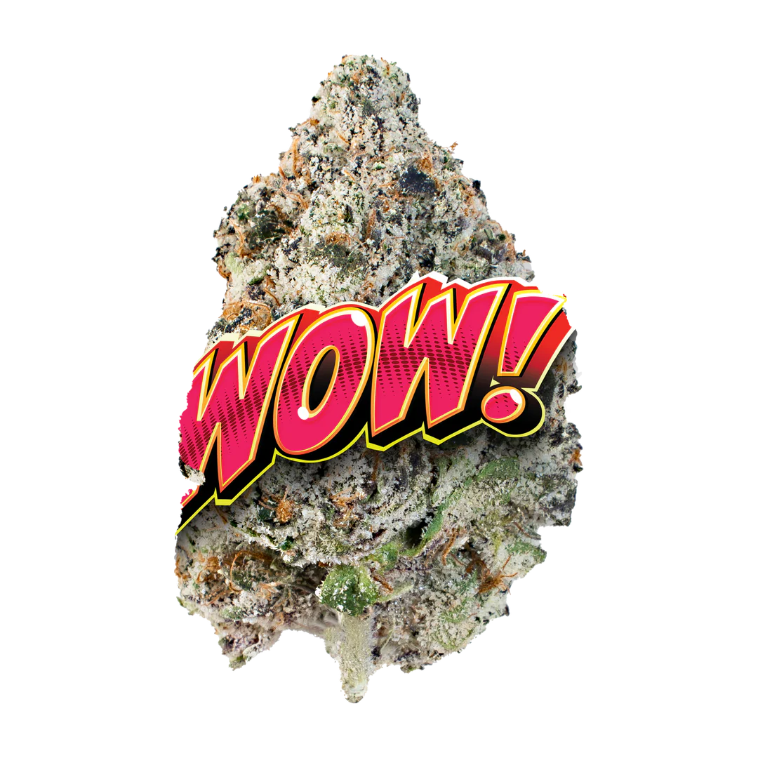 WOW is a potent, well-balanced hybrid strain that combines the best of both worlds with an energetic cerebral high and a deeply relaxing body buzz. This strain is known for its strong, euphoric effects and a flavor profile that’s both fruity and tangy.